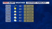 Expect a mix of sun and clouds Friday with highs in the mid-60s, followed by a 30 % chance of showers by late Friday night into early Saturday for Sussex County and a warmer high near 68 °F Saturday.