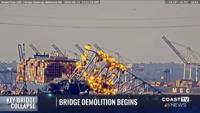 Small explosives could be seen blowing up part of the collapsed F. Scott Key Bridge. Officials say this is in an effort to finally free the sh…