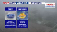 A departing coastal low keeps skies cloudy and winds gusty across Delmarva today, but drier, cooler air arrives midweek as a cold front sweeps through. Temperatures will dip into the 30s and 40s by midweek nights, with high pressure bringing sunshine and calmer weather by Friday. Another warm-up and a chance of showers are expected by the weekend.