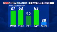 As surface high pressure moves offshore this afternoon, cloud cover continues to gradually increase. Temperatures will continue running below average, with highs in the 60s to around 70.
