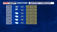 A cloudier end to the weekend with Sunday showers, then a coastal low brings a cold rain on Tuesday.