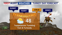 Mostly cloudy skies and near-normal temperatures are expected from late Wednesday evening through late Thursday evening, with only a small chance of brief flurries or sprinkles, especially on Christmas Day.