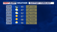 Sunshine and 50s hold on Thursday, then Delmarva jumps into the 60s Friday ahead of several rounds of rain Friday afternoon through Sunday morning.