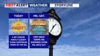 Mostly sunny skies and gusty winds rule Wednesday and Thursday, then temperatures jump above average Friday and Saturday with increasing chances for showers.