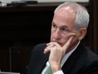 Ex-FirstEnergy Senior Vice President Michael Dowling listens to defense attorney Carole Rendon (not pictured) deliver her closing arguments in former FirstEnergy CEO Chuck Jones trial in Summit County Common Pleas Judge Susan Baker Ross's courtroom in Akron on Tuesday, March 17, 2026. (Mike Cardew/Akron Beacon Journal via AP, Pool)