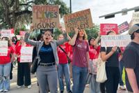 FILE - Students and activists rally for gun control policies outside of Florida's historic old capitol on Wednesday, April 23, 2025 in Tallahassee, Fla., less than a week after a deadly shooting at Florida State University. (AP Photo/Kate Payne, File)