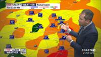 A cloudier end to the weekend with Sunday showers, then a coastal low brings a cold rain on Tuesday with a Yellow Alert.