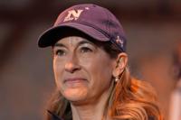 FILE - Democratic gubernatorial candidate Abigail Spanberger speaks to members of the press on the first day of early voting in Henrico County, Sept. 19, 2025. (Mike Kropf /Richmond Times-Dispatch via AP, File)