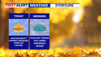 Delmarva can expect pleasant, mostly sunny weather through Tuesday with highs in the 70s to low 80s before a cold front brings widespread rain Tuesday night into Wednesday. The front will usher in cooler, fall-like temperatures for the end of the week, with highs returning to the 60s and a potential for frost in inland areas by Thursday night.
