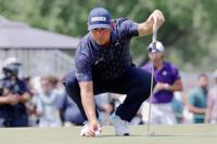 Gary Woodland places his ball on the ninth green during the final round of the Texas Children's Houston Open golf tournament Sunday, March 29, 2026, in Houston. (AP Photo/Michael Wyke)