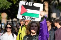 A pro-Palestinian demonstrator gathers for a national general strike called by different unions to protest against the situation in Gaza two days after Israeli forces intercepted a Gaza-bound aid flotilla in the Mediterranean Sea, in Rome, Friday, Oct. 3, 2025. (AP Photo/Alessandra Tarantino)