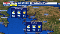 Delmarva will enjoy warm and mostly dry conditions this weekend, with highs in the mid-80s on Saturday. Rain chances increase late Sunday night as a system approaches from the north, but significant impacts are unlikely.