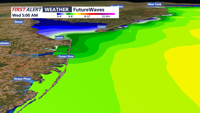 Temperatures climb near 70 Tuesday before an overnight cold front brings scattered showers, gusty winds, and a midweek cooldown.