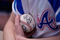 FILE - A young fan holds his baseball as he waits for more autographs from players before a spring training baseball game between the Minnesota Twins and the Atlanta Braves in Fort Myers, Fla., Feb. 22, 2025. (AP Photo/Gerald Herbert, File)