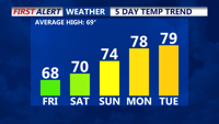 Warming up into the weekend as the stretch of dry weather continues. Drought conditions persist into next week with warmer temperatures.