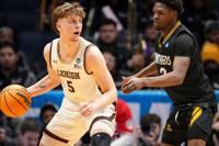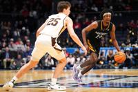 Lehigh guard Jalen Vazquez (31) controls the ball against Prairie View A&M guard Dontae Horne (2) during the first half of a First Four college basketball game in the NCAA Tournament in Dayton, Ohio, Wednesday, March 18, 2026. (AP Photo/Jeff Dean)