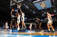 Prairie View A&M guard Lance Williams (12) shoots against Lehigh guard Jalen Vazquez (31) during the first half of a First Four college basketball game in the NCAA Tournament in Dayton, Ohio, Wednesday, March 18, 2026. (AP Photo/Jeff Dean)
