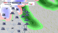 A cold rain the rest of this afternoon and evening, maybe ending as a little but of snow, then arctic air for the weekend. Warming up heading into Christmas.
