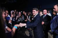 Republican Clay Fuller speaks to supporters after learning he would advance to a runoff election during an election night watch party, Tuesday, March 10, 2026, in Rome, Ga. (AP Photo/Mike Stewart)