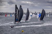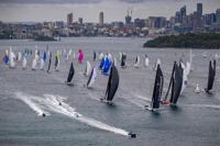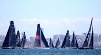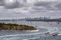 In this photo provided by the Cruising Yacht Club of Australia, LawConnect leads all competitors after the start in the Sydney Hobart yacht race in Sydney, Friday, Dec. 26, 2025. (Kurt Arrigo/CYCA via AP)