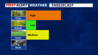 We have an elevated level of pollen in the air, which is evidenced by the mess we are all finding on our cars. Here's a look at the pollen count expected for Wednesday, April 17.