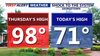 Strong storms and a cold front Thursday evening will offer a brief break from the heat, but Sussex County will see rising temperatures and humidity again through the weekend into next week.