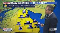 Meteorologist Chris Mastrobuono has the latest on a partly cloudy cool day, more clouds south, highs upper 50s-low 60s, breezy at the coast gu…