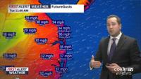 Meteorologist Chris Mastrobuono has details on a gloomy windy day along the coast, highs in the upper 50s, scattered showers through the eveni…