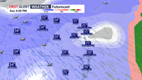A strong Canadian high-pressure system will usher in frigid temperatures and windy conditions starting today and lasting through Monday. Wind chills will dip into the 20s today, with even colder conditions expected Sunday morning. A potential low-pressure system could bring precipitation Monday night into Christmas Eve.