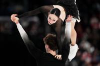 Ellie Kam and Danny O'Shea compete during the pairs free skating competition at the U.S. Figure Skating Championships, Friday, Jan. 9, 2026, in St. Louis. (AP Photo/Jeff Roberson)