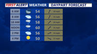 Gusty but seasonable weather holds through the end of the week on Delmarva, with clear skies for possible Northern Lights viewing tonight, rain and a brief warm-up Sunday, and a cooler, windy return early next week.