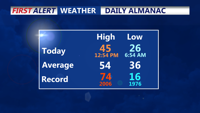 Light rain ends early Sunday evening before colder, gusty conditions settle in.
