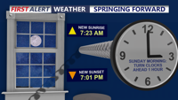 Remember to set your clocks ahead one hour tonight as we start Daylight Saving Time.