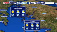 A chilly Tuesday starts quiet along the Sussex County coast before a weak system brings light rain by evening.