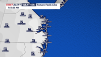 A slow-moving cold front will bring rain and potential fog tonight before stalling over the Mid-Atlantic. Expect clearer skies and drier conditions by tomorrow morning.