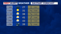 A chilly start to our Saturday with highs in the 40s with less wind. A bit milder for Sunday.
