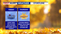 Gusty but seasonable weather holds through the end of the week on Delmarva, with clear skies for possible Northern Lights viewing tonight, rain and a brief warm-up Sunday, and a cooler, windy return early next week.