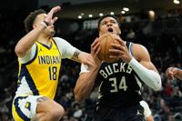 MILWAUKEE (AP) — Giannis Antetokounmpo left Milwaukee’s game against the Indiana Pacers on Sunday after landing awkwardly as he completed a du…
