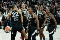 The Aces were closer of a three-woman show, with Wilson coming within three points of her playoff career high. Chelsea Gray — who briefly went into the locker room early in the third quarter with an apparent right leg injury — scored 17.