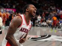 Arizona guard Jaden Bradley (0) puts up a shot during the second half of an NCAA college basketball game against Iowa State in the semifinal round of the Big 12 Conference tournament Friday, March 13, 2026, in Kansas City, Mo.