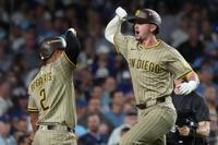 After Brad Keller faltered in the ninth — allowing Jackson Merrill’s leadoff homer and hitting two batters with pitches — Andrew Kittredge earned the save by retiring Jake Cronenworth on a bouncer to third and Freddy Fermin on a flyball to center field.