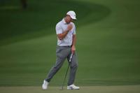 Justin Thomas had a rude welcome back from five months away recovering from back surgery. He had a double bogey on the par-4 11th when he missed the fairway and missed a 3-foot putt, and another double on the 16th when a wedge from 81 yards went into the creek in front of the creek (it actually bounced into the creek). He shot 79 and needed a low score Friday to make the cut.