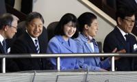 The Japanese royals entered the Tokyo Dome during batting practice before the game began and waved to some fans on hand for the game.