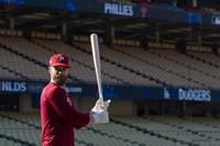 He left Game 1 early with a groin injury and came off the bench in Game 2 to deliver a pinch-hit single during the Phillies' ninth-inning rally.