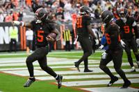 Cormerback Tyson Campbell, acquired from the Jacksonville Jaguars on Oct. 9, returned an interception for a touchdown on the first play of the second half as the Browns (2-5) got over the 17-point hump for the first time in 12 games.