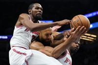 Randle, who had all of his 24 points after halftime, was called for a foul on Kevin Durant's drive with 3.3 seconds remaining. After the Rockets started 23 for 23 from the free-throw line, Durant's first attempt was short. He missed the second one intentionally to try to keep possession, but the Rockets never got a final shot.