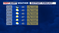 DELMARVA - Balmy start to our Wednesday, a warm front lifted through the region overnight helping temperatures stay well above the freezing mark. Temperatures have been in the 40s and 50s, a cold front will be pushing through this morning, so temperatures will dip a few degrees before rising back into the mid to upper 40s through the afternoon. We turn breezy with gusts to 30 mph out of the northwest under partly cloudy skies.Â
