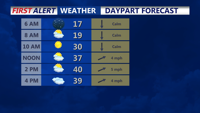 Behind that clipper, we turn dry and cold again Wednesday and Thursday, with temperatures in the low to mid 30s. Skies trend partly cloudy to mostly sunny.Â