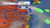 Behind the front, temperatures will ease back somewhat on Thursday, with highs mainly in the low to mid 60s. However, the forecast becomes more uncertain late in the week because the front may stall over Delmarva or lift back north as a warm front. That setup would allow warmer air to return and keep conditions unsettled.