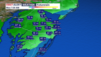 Behind the cold front, Delmarva turns much more seasonable heading into next week. High temperatures will mostly settle back into the 50s, with overnight lows in the 30s and 40s through midweek. A gradual warming trend may begin again by Thursday and beyond.